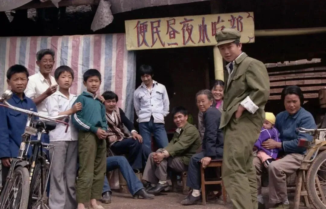 80年代的一家私营商店,写着“便民昼夜小吃部”,门口挤满了朴实的村民。