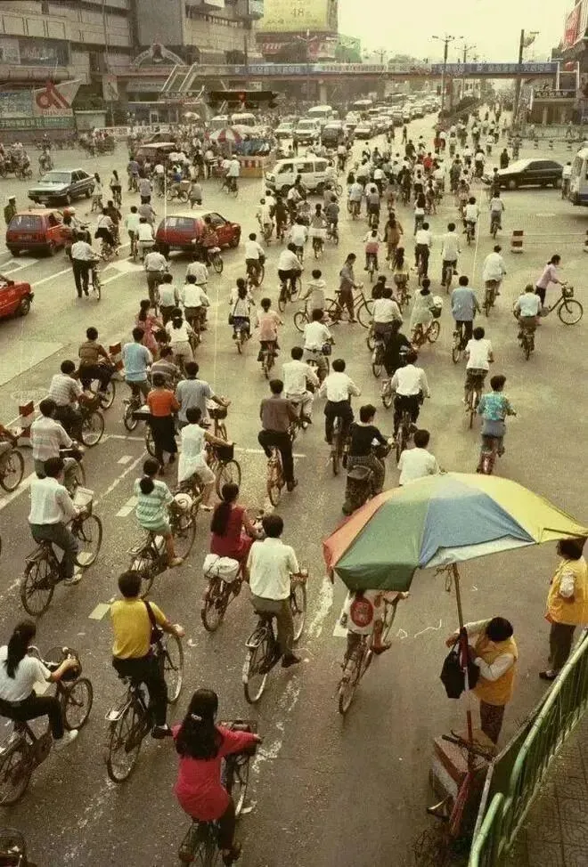 80年代的大江南北,到处都是骑自行车的人。中国是“自行车大国”,永久、凤凰、大金鹿、飞鸽单车非常受人欢迎。