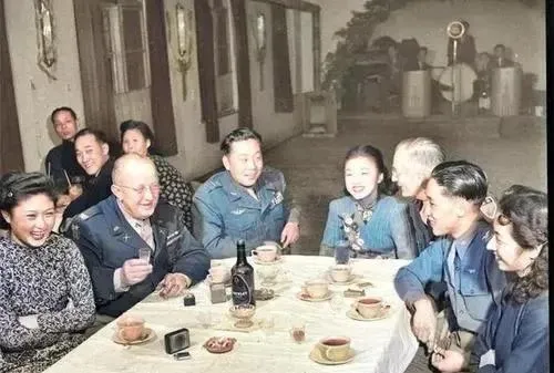 图里这一桌是军装夹着家常的场面,瓷盏茶碟一圈摆开,瓶里盛着酒,笑声在屋檐下盘旋,谁都知道日子再紧也得找个台阶落脚,饭桌就是台阶,有人端杯有人挟菜,有人把袖口一卷露出腕表,夜深了也不散,门口的风把笑意吹轻一点,桌背后站着的人不坐,就是喜欢挤在热闹边上。