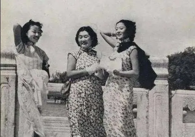 这两张都是风把裙摆吹开的年代,机翼下排开站姿,帽子歪着戴,另一张在石桥上挽着手笑,旗袍的纹路顺着腰折过去,阳光一照就亮,后来再看,谁都说那是城里最会穿衣打扮的一拨人,现在街上走快了不容易看清这份闲适。