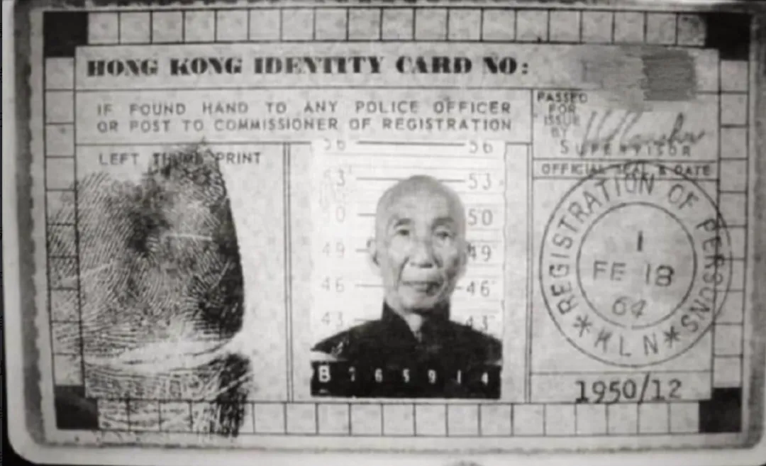 这是1960年,咏春拳大师叶问的身份证