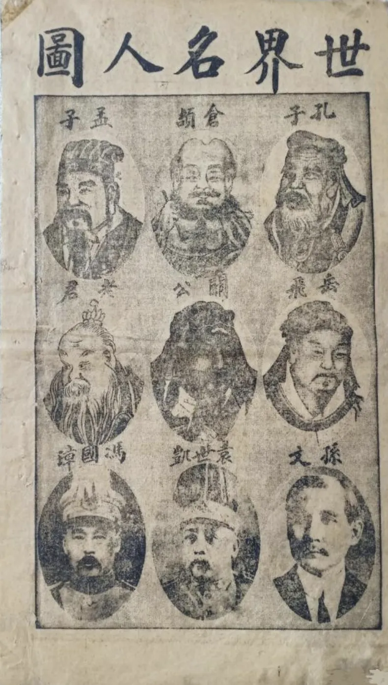 这是一张民国时期的宣传画,最好笑的是标题居然是世界名人图。看来看去关公、孔子居然属于世界名人。