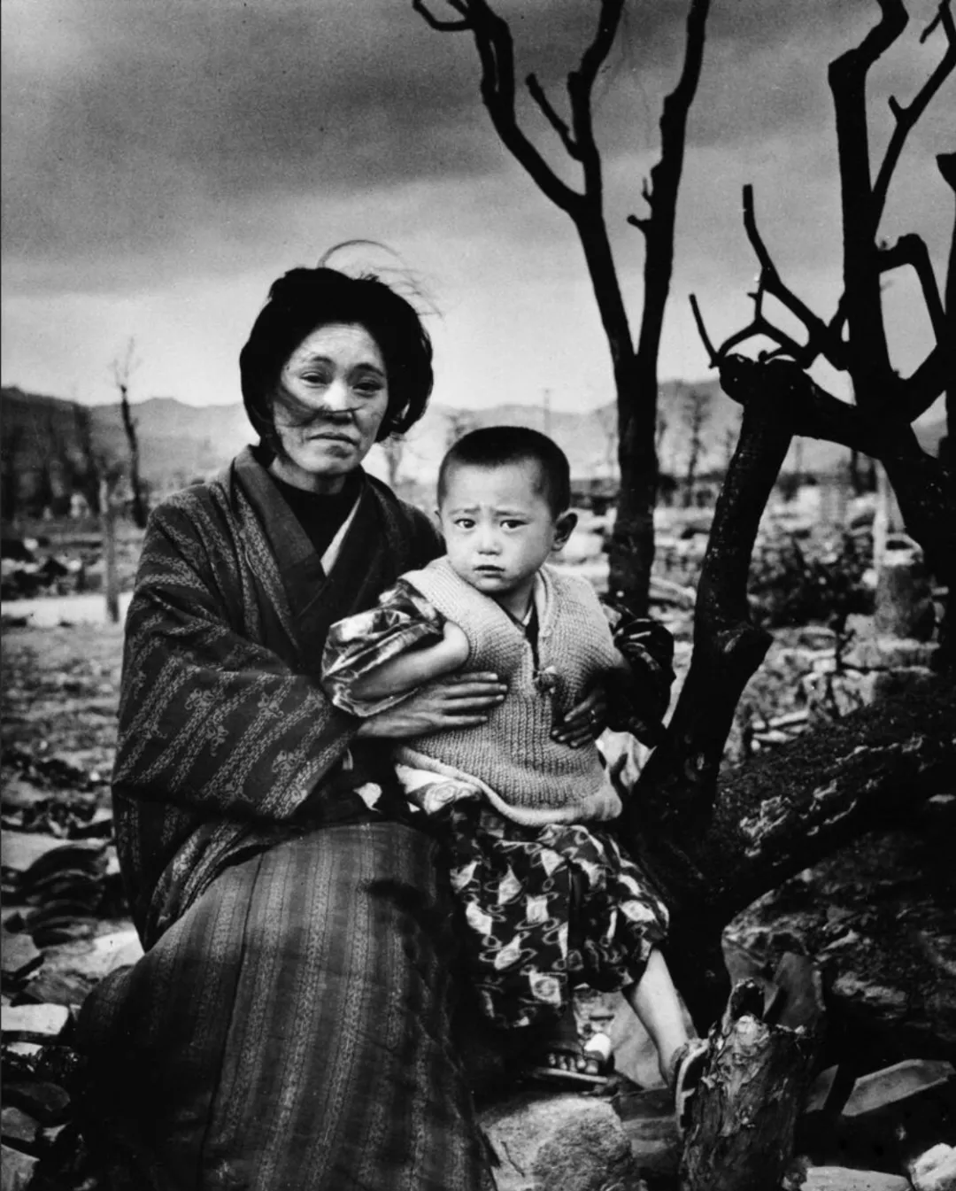 这是1945年,原子弹爆炸后的广岛一对儿母子,通过女人的眼神可以看出,她们经历过什么。