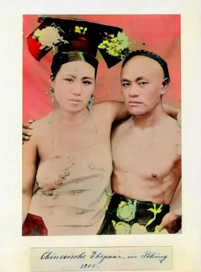 这张照片拍摄于1905年,画面中这个貌似宝强的人搂着他的女朋友毫无羞涩的看着镜头,在封建社会肯穿成这样面对摄影师,真是需要莫大的勇气。