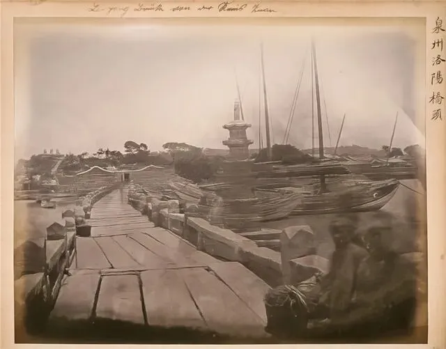 别的城市拆旧建新,泉州把老东西留了下来:开元寺的东西塔,立了一千多年;洛阳桥的石头,踩了九百多年。那会儿是同治年间,牌坊满城都是,忠孝节义、科甲功名,谁家出人物就立一座。照片里那座,不知道叫什么,也不知道后来拆了还是毁了。但那一瞬间被留了下来,140多年后,我们还能看见。洛阳桥是中国第一座跨海梁式石桥,北宋皇祐五年(1053年)开建。九百多年过去,涨潮的时候桥墩泡在水里,退潮的时候还能看见那些种蛎固基的蛎房——古人用牡蛎粘合桥基,这法子全世界独一份。照片里,桥头还有老房子,还有人推着板车经过,和几百年前的人走的是同一块石头。开元寺始建于唐垂拱二年(686年),东西塔是南宋重建的,一直立到现在。民国时期的照片里,塔下的古厝还是老样子,香火没断过。那一千多年里,多少人在这烧过香、许过愿,没人知道。为什么阿拉伯商人愿意漂洋过海来,为什么一千多年过去,这些东西还能留下来?答案可能就在这些老照片里——开放、包容、敢闯、念旧。开了一座港,迎了八方客;赚了钱不飘,修桥铺路盖庙;时代变了,老东西不拆,留着给后人看。