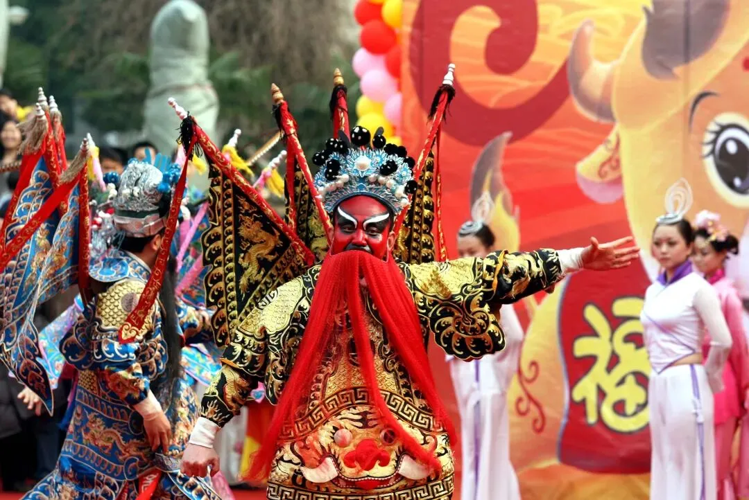 锣鼓喧天中,传统戏剧、舞龙舞狮、民俗秧歌、传统曲艺等节目轮番上演,演员们身着盛装、精神抖擞,精彩的表演赢得现场观众阵阵掌声与喝彩。