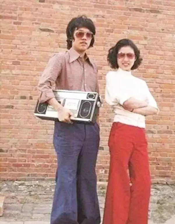 这对老照片里的潮人,男的一手拎收录机,女的红喇叭裤,站姿就是当年的范儿,喇叭裤那会是“时髦精”标配,裤腿一甩,风就跟着走,配个大墨镜再加一盒磁带,收录机高音贼亮,在胡同里一放,谁家孩子都跟出来凑热闹,那时咱没高科技,谁家能有台收录机,基本能做全小区的“DJ”,奶奶都说“穿成这样,回头率不低咯”,现在说复古,商场卖的也不过样子货,真正的气场,全写在照片里了。