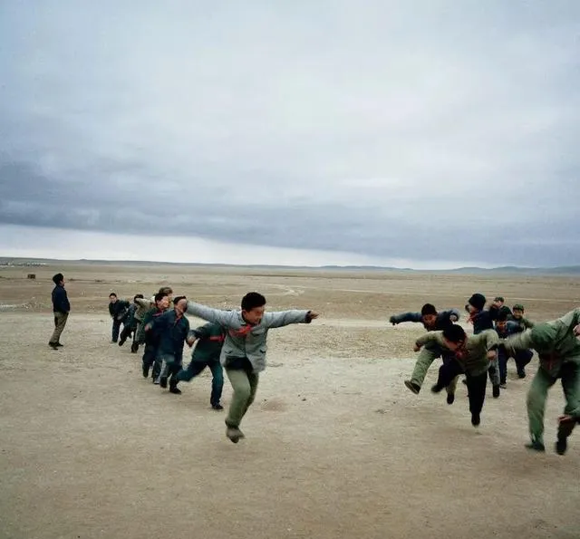 照片最右边,一长串孩子排成长龙,最前头小孩弯着腰冲出去,这正是老鹰捉小鸡的阵势,谁做老鹰谁当鸡妈妈全靠吆喝,轮流当,大风沙场地,衣裤沾满泥巴,追得浑身大汗,笑闹声能传一下午,现在操场游乐园再大,都没这份野劲,院子里一但有老鹰捉小鸡,一群伙伴就跟着疯起来了。