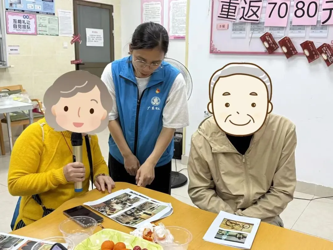 随后,社工通过《酒干倘卖无》《帝女花》等经典音乐带领大家回到七八十年代,大家分享起了自己当时独特的元宵记忆。“那个时候家庭并不富裕,元宵汤圆是攒了好久的票换到的,一家人吃得很开心。”猜灯谜环节,大家三五成群,或凝神思考,或热烈讨论,现场欢声笑语不断。当谜底揭晓时,一份份精美的小礼品更是让大家喜上眉梢。接下来,社工鼓励大家展示手中的老物件卡片,分享背后的奋斗往事。一位居民在分享早年工作经历时,社工运用倾听、共情等专业技巧,引导其从过往的艰苦岁月中挖掘坚韧品质。“能挺过那段日子,说明您骨子里特别坚韧,有一股不服输的劲头!”在社工的引导下,参与者们纷纷打开话匣子,从单纯的“倾听者”转变为“经验分享者”,在重温岁月中找到了自己的优秀品质。