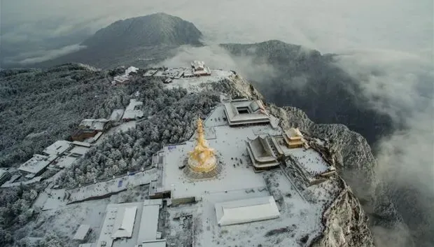 峨眉山金顶是峨眉山寺庙和景点最集中的地方,名胜云集,为峨眉精华所在。金顶也称华藏寺,位于四川省峨眉山主峰上,海拔3077米,是峨眉游山的终点,也是全国重点寺院之一。