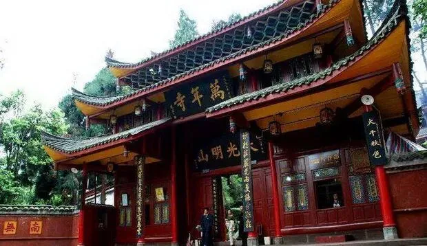万年寺,四川峨嵋山历史最悠久的古刹之一,相传为汉代采药老人蒲公礼佛处;东晋隆安五年(401)创建时名普贤寺;唐乾符三年(876)慧通重建,易名白水寺;宋称白水普贤寺。明万历二十八年(1600)重修时,神宗赐额“圣寿万年寺”,沿称至今;万年寺为峨嵋山八大寺庙之一,全国重点寺院之一,有无梁砖殿、巍峨宝殿、白水池等景点。