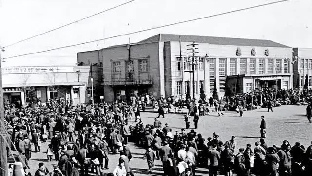 图中这处是无锡站前的广场,低矮的房檐挨着方正的站房,门头上写着“无锡站”,前坪人头攒动,挑担的提包的全往里涌,售票口前拉着长长的队,耳朵里像能听见“让一让”的招呼,爷爷说那会儿赶火车得早到一会儿,队伍拐两个弯也不稀奇,现在高铁一掐点儿上车,过去这阵仗靠的是脚底板和耐心。