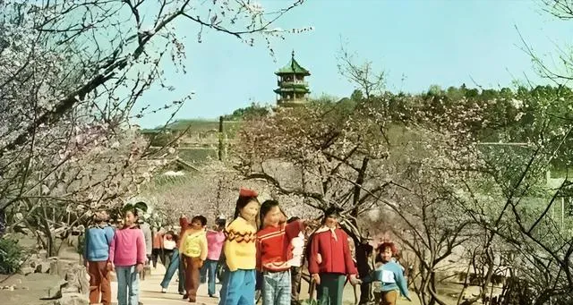 图中这一片是梅园开花的时候,小孩彩色毛衣在枝头底下挤成一团,老师举着手点数,咯噔咯噔走过石桥,照相的人让站定一会儿,笑一笑,快门一按就把春天摁住了,等回到教室,花粉的甜味儿还粘在袖口上。