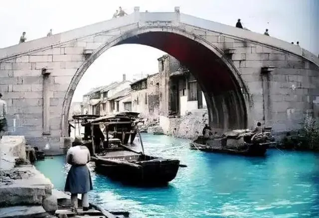 这座拱桥一弯压在水面上,青石被脚板磨得发亮,桥洞里钻过几只木船,艄公站在船尾,篙一点水面就散出一圈一圈,岸边人背着手望一会儿才走,运河绕城而过,家家窗户都朝着水,以前靠船来往,现在靠地铁公交,水还是那条水。