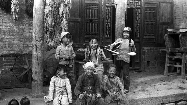 这些笑叫定心丸,小孩抱着战士的脖子不撒手,裤腿打着补丁也蹦得快,竹条做的玩具在空中转,土台阶坐一排,嘴角全往上翘,那时候糖不多,笑一点也不少。
