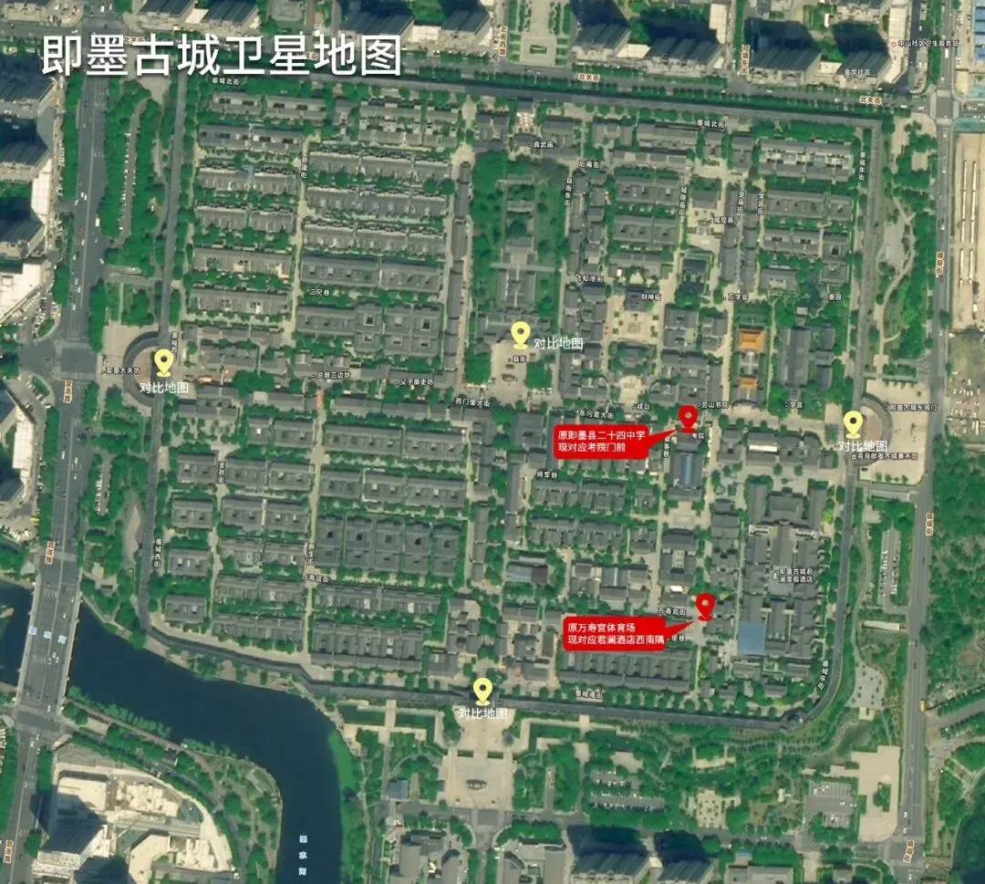 在城门口、县衙前等重要点位也设置了2012年与现在即墨古城卫星地图的对比图。邀您来即墨古城,在青砖黛瓦间,找寻那份藏在岁月里的美好回忆。