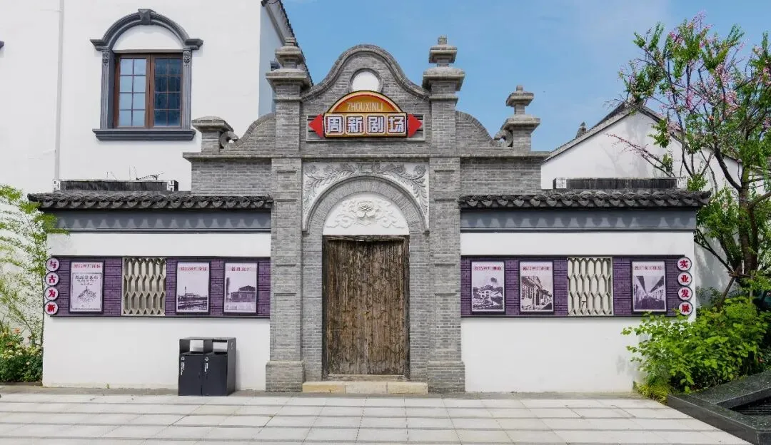档案资源的深度挖掘,为街区造景提供了核心素材支撑。周新里的展陈体系精心规划五大主题场景,每一张老照片的遴选都源于扎实的档案梳理。立信廊桥的“时光通道”照片墙,精选周新镇早期风光、东绛工商业兴盛图景与更新后的街区新貌,以桥梁为视觉纽带,通过黑白影像与彩色实景的交替呈现,直观展现从清末小村到工商名镇、再到文旅地标的百年变迁,让游客在通行间完成“穿越时空的对话”。