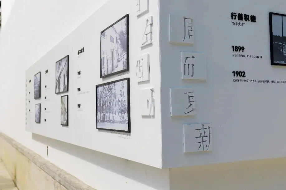 老照片的场景化应用,构建了沉浸式文化体验空间。在周舜卿故居侧墙,档案史料中关于这位“锡商巨擘”的产业图景、办学旧址等老照片,与 “煤铁大王”“善举大王”等标签相得益彰,系统呈现了其创办周新镇、兴办学堂、发展实业的传奇人生,让锡商“敢为人先、兼济天下”的精神内核可视化。