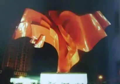 连云港市华联大转盘上这个红色雕塑建于90年代,是一种像红色丝带一样的东西,具体寓意是什么就不知道了,