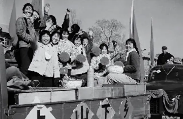卡车后斗装满人,女知青们一身旧布衣,扎着羊角辫的、蘑菇头的,脸上都是笑,手里捧着花球,队伍旁边有人挥手,有人眼里带着泪花,出发那一瞬,谁也没细想究竟去哪,有人小声在耳边念叨“到了地头可别认生”,也有人嚷嚷“反正有姐妹在,哪都不怕”,满车的姑娘一句句喊着口号,整条街都跟着热闹,越往远走声音越亮,谁说苦的路上没有喜气。