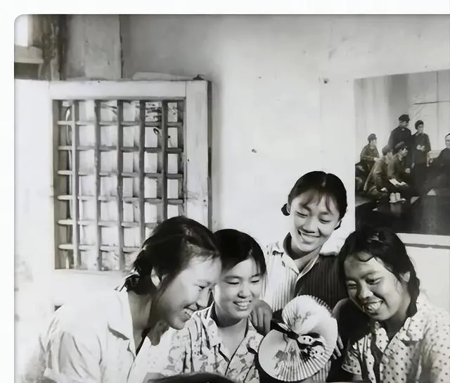 四个女知青,俩站着俩坐在门槛上,褪色的衬衣、扣子少了还用针线绞着补了一下,门口的砖头地和窗棂子全是岁月痕迹,有人笑得腼腆,有人笑得随意,平常时光一有空就挤一块,有人会弹一段小曲子,有人抻着衣袖讲校里的趣事,那屋檐下的阴凉和笑声比什么空调房都舒服。