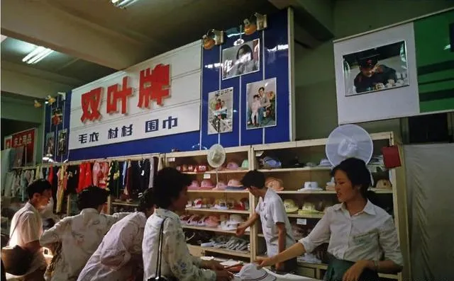 双叶牌的柜台前,小帽子、花布顶天花地地吊着,那会儿一件毛衣得省着穿,一家人来商场,就是过年头等大事,售货员整齐划一的白衬衫,说话也客气,妈妈总拉着孩子问:“今年有没有新款”,柜台后头顾客堆一圈,都巴巴地盼着能抢到合手的,大包小包带回家那叫一个满足。