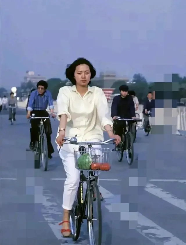 姑娘白衬衫、白裤子,骑个黑色自行车稳稳当当,篮筐里俩青菜,路上一看清一色的“飞鸽”“凤凰”,那会儿女人骑车就是一道风景线,奶奶说以前上下班,大家从厂里蜂拥而出,街口全是人和车,现在这画面再难碰见。