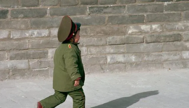 穿一身绿色军装的小孩摇摇晃晃走路,帽檐压得快盖住眼睛,可肩膀上的小黄杠儿整整齐齐,那时候家里有点苗头就给娃买身军装,逢年过节一穿,家里老的小的都乐坏,现在楼下的孩子没见过军衣是什么味儿。