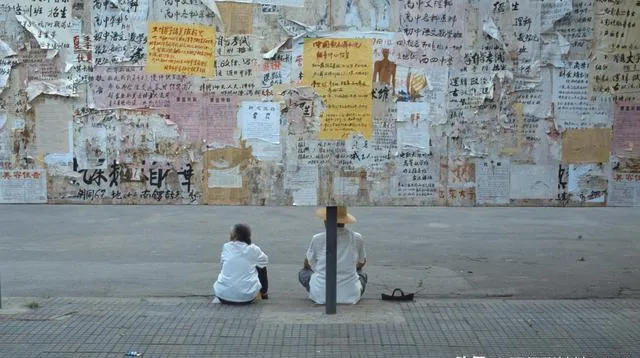 两个人支着背靠着宣传栏下歇脚,墙上糊了密密麻麻的小广告纸条,夏天太阳最辣的时候,楼下大人都在树荫底下摆龙门阵,贴大字报成了那会儿一景,想找点活路就往公示栏门口一坐,累了歇会儿再走。