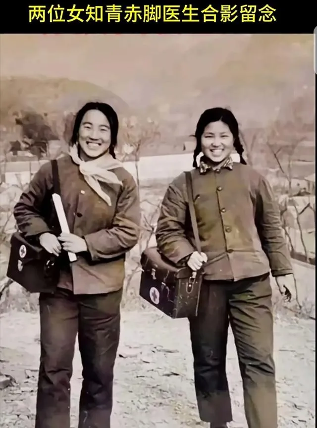 这张照片里是知青下乡和赤脚医生的合照,左肩背着药箱,笑得特别自信,自行车一扔,药箱一拎就是全村跑,谁头疼脑热、摔了碰了都找赤脚医生,什么都得会点,扎针、拔火罐、熬草药,有时候还要帮着唱宣传歌劝大伙注意安全,奶奶总说,那个年月会一点医术的就是全村的“半仙”,有困难找她们准没错。现在的村医有诊所有设备,讲究也多,院里的草药缸早就进博物馆了。