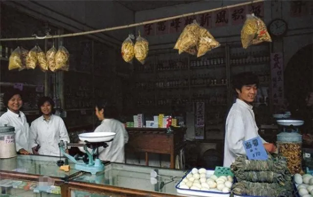 老药铺柜台,玻璃后面搁着大大小小的药罐,身穿白褂的伙计们笑得自然,秤砣一拨一拨量药,绳子上吊着小包零食,小时候陪着家人抓药,最怕那苦汤子,现在看过去,药铺里每个人好像都认识,买东西都是点头哈腰的寒暄,逢年过节还要互相问一声家里最近怎么样,现代大药房冷清得很,不像以前,称一两药,算半分钱,全是熟人间的信任账。