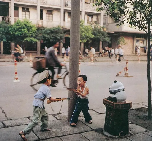 照片里两个小崽子,一个头戴纸帽子,一个嘴巴咧开,手里的“宝剑”其实就是家里边裁剩的纸皮,一边吆喝一边转圈,笑声跟着满街跑,电线杆是“城门”,小伙伴就是“敌人”,打输的得请糖豆,没道理可讲,你追我赶,打得不亦乐乎,妈妈每次叮嘱别玩太疯,最后都忍不住跟着乐两声,这种没有规则没有大人的自制游戏,现在的孩子大概难体会。