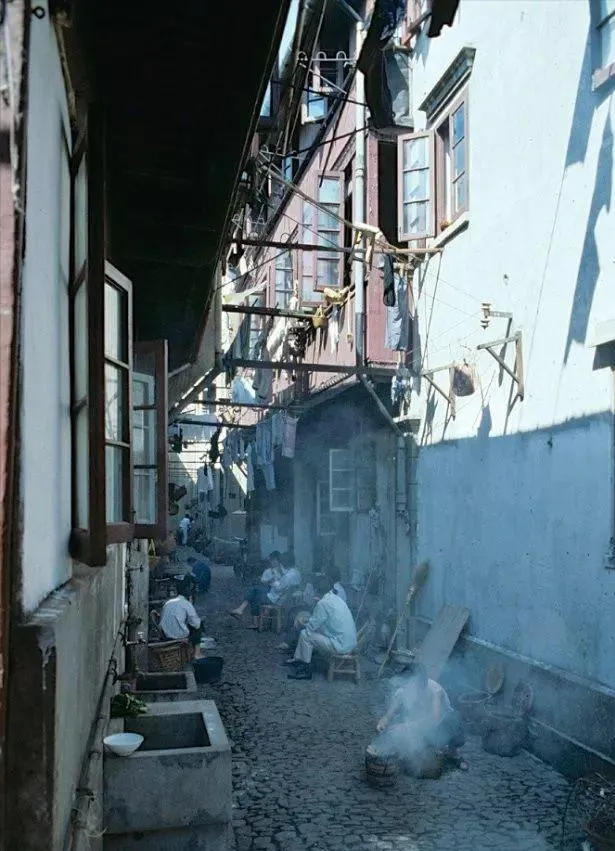石库门里晾衣杆横七竖八,小人坐矮凳抽烟摆龙门阵,锅里咕嘟冒烟,孩娃跑来跑去,早饭鸡蛋煮好一个传一个,这种屋前屋后的弄堂日子,看上去啥也没有,其实说东家长西家短、邻居轮流借火柴借油盐,家里蒸的馒头热腾腾的就传到头巷了,现在买房子讲户型讲独立,过去就图个热闹安生。
