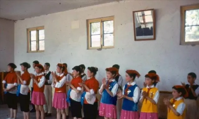 教室里学生排练,红黄蓝三色裙子亮闪闪,领口和袖子明净整齐,全班人鼓着劲唱歌,老师在一旁打拍子,那时候彩色衬衫是节日专用,男孩女孩全劲头十足,一下课都不肯脱下,嘴巴边总有歌,嬉笑打闹的样子,现在偶尔还能记起,那个年代的纯真和热闹,唱歌都是从心里涌出来的。