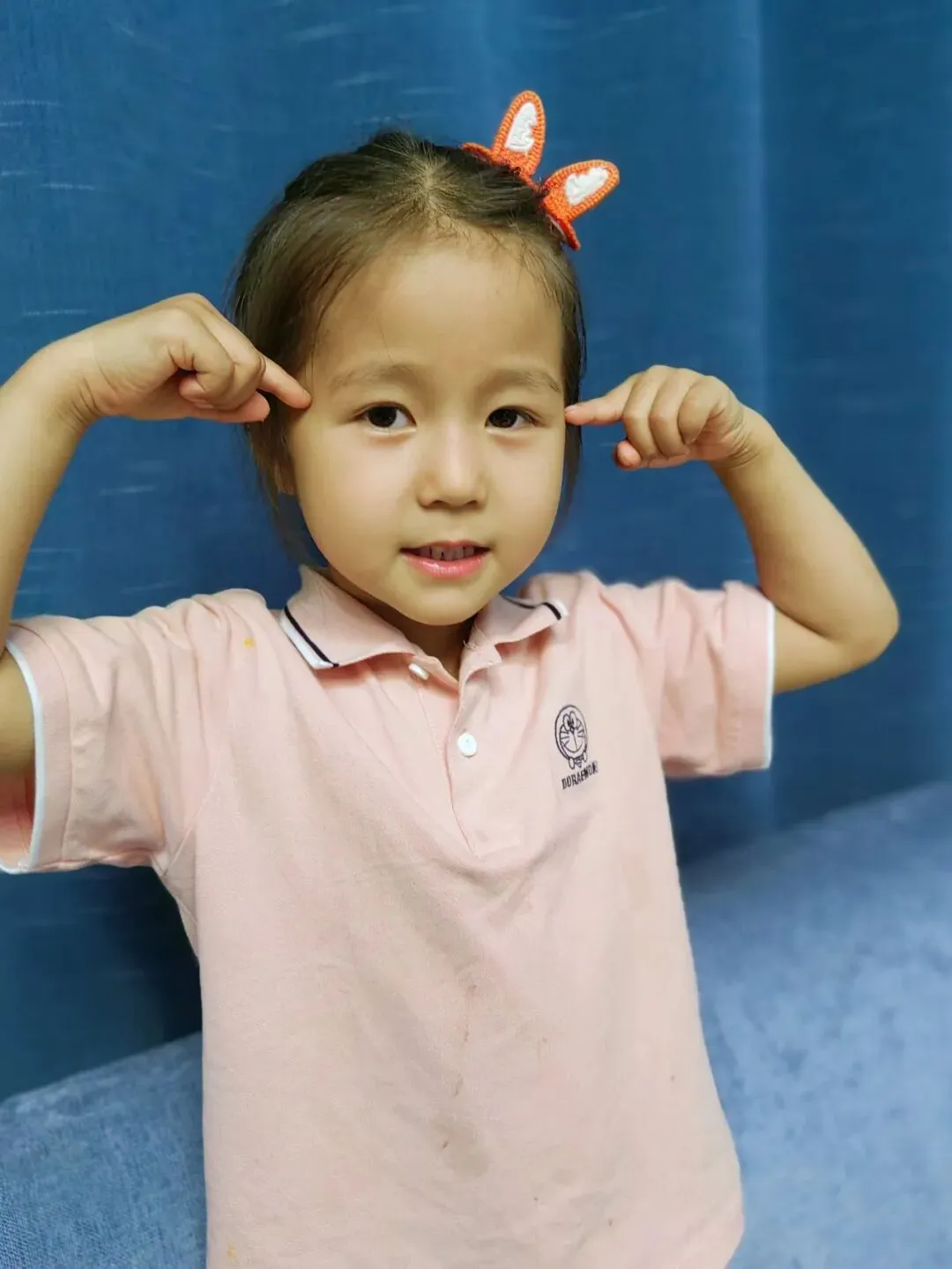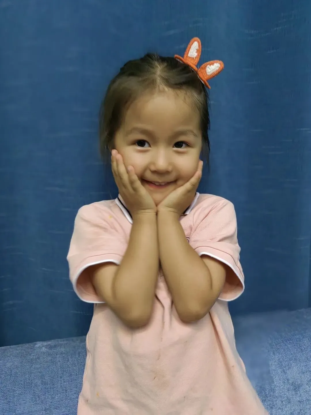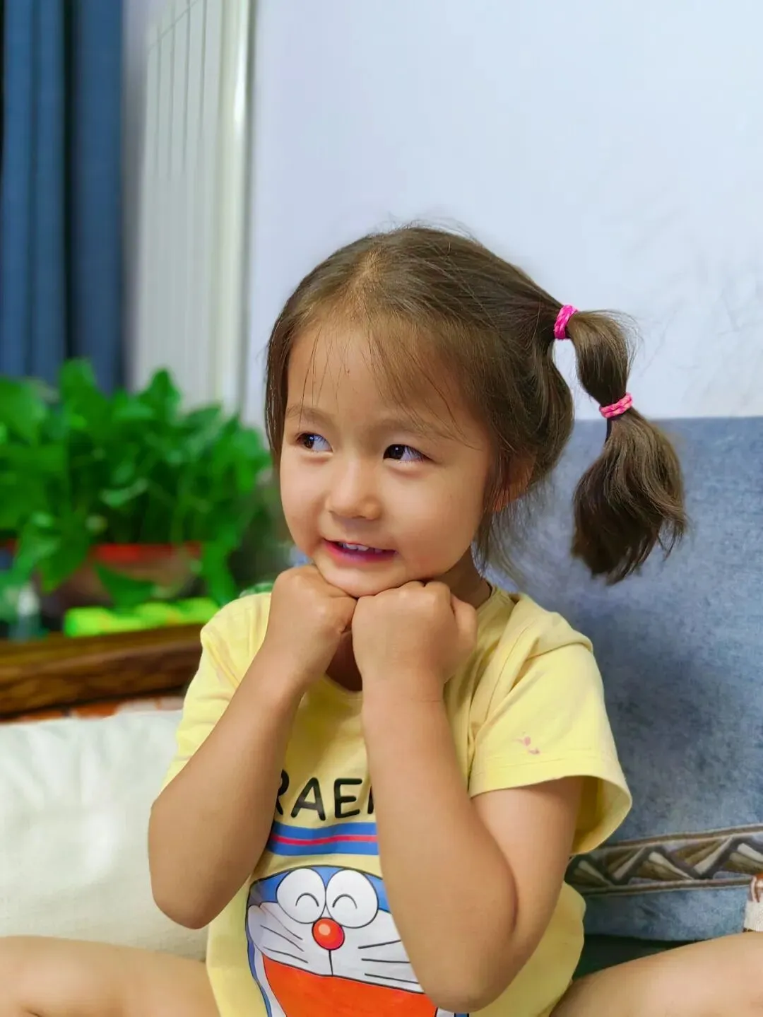 扎小辫时期的小花,现在已经不让扎小辫了,只能扎马尾