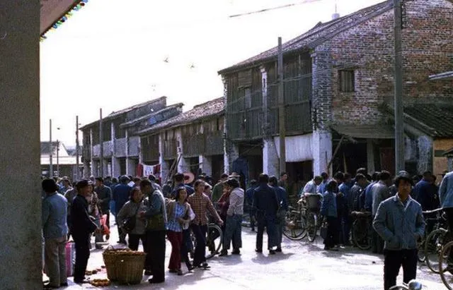 图里热闹这地儿就是那会儿深圳的老集市,房子挤得密密的,顶上瓦片旧得发黑,墙面东一块西一块花,摊主直接摆地上,一堆人围着瓜果蔬菜讲价,小孩趴桌边看糖,吆喝声、脚步声、推自行车的呼啦啦,夹在一块就是八十年代的味道,那时深圳没几个高楼,大伙还穿着灰蓝色粗布衣服,扎堆凑热闹,这种场景,现在想来还兴奋得很。