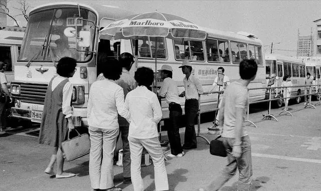 说到深圳,公交车硬是个标志,图中这种老式大巴,鼻子方的,铁皮漆得发亮,左一个右一个整齐排队,站台立个太阳伞,遮阳下头是卖票的师傅,那会儿公交车票一张一毛钱,哥哥说觉得贵还舍不得坐,坐一趟得在兜里掏半天,投币口常年咣当咣当响,谁再仔细一看,票面上还有小洞,是收票那个手一按的,现在公交刷卡一扫,方便得多,谁还记得那张纸头的小味道。