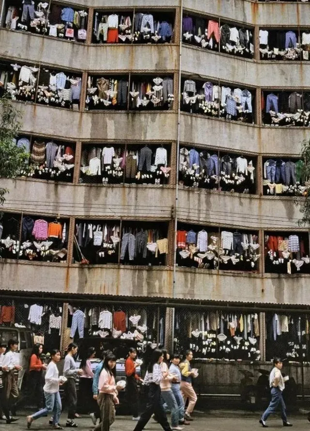 说到八十年代深圳,这种层层叠叠衣服晒满栏杆的公寓楼,绝对是经典画面,楼道里晾的五颜六色,全是流水线上的年轻工人,早上排队出门赶班,晚上收衣裳的时候辛苦得很,宿舍下面有小卖部,工资卡发下来,女生扎堆去买双新鞋,谁在这里住过几年,回头看见栏杆上的花花绿绿,都能分清哪件是谁家的。