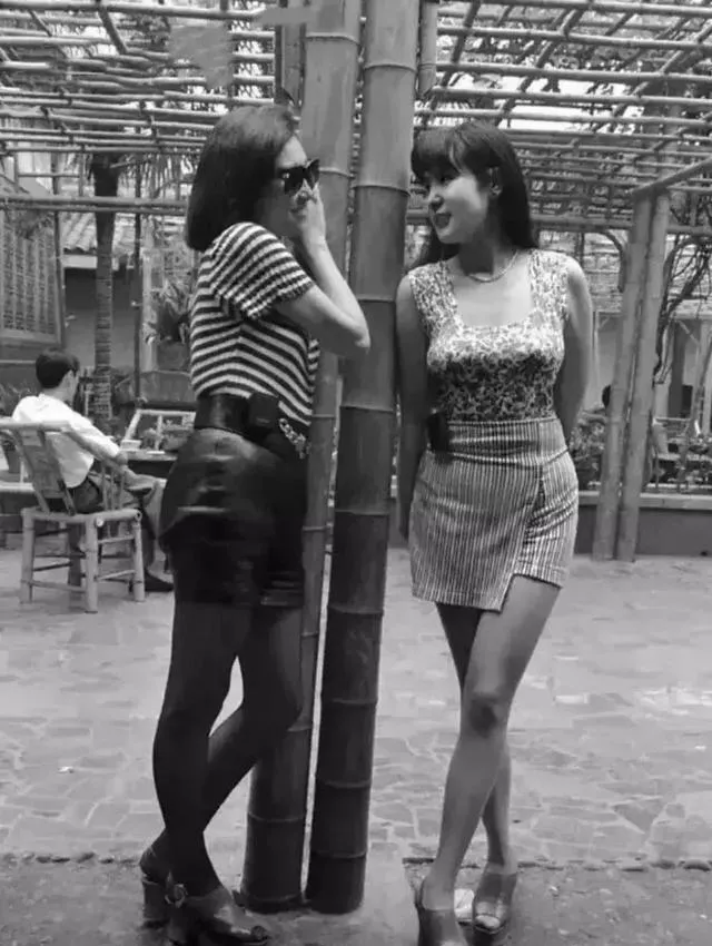 这两位深圳街头的女青年,一个戴大墨镜,一个穿竖条短裤,那风格立在那里,就是八十年代独有的俏劲,当年青春就是敢穿敢秀,谁敢这么打扮走路上绝对是风景,奶奶看见直叹气,说现在的年轻人花哨得很,皮带卡腰,小黑鞋敲得咔哒咔哒,一条街走过去,回头率比公交车还高。