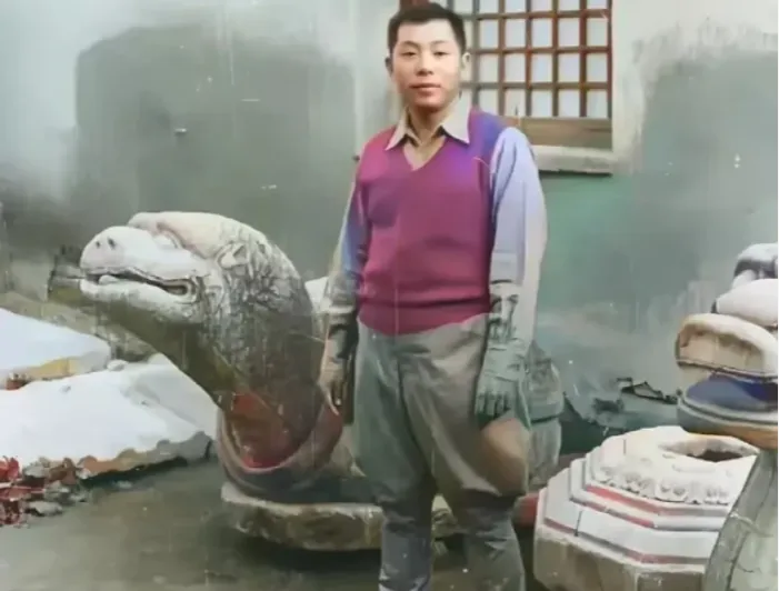 图中这位穿衬衣西裤的青年叫张学良,三十出头的年纪,衬衣外套着一件红色棉线背心,脚下皮鞋擦得锃亮,站在石龟旁边,神情不紧不慢,袖口收得利落,腰线提得高,镜头一按他就有光,老辈人常说衣裳是门面,站姿是气骨,这一身打理在当时可算新潮,洋气里头还有股子军人生出来的板正,现在看去依旧顺眼,年轻人要学的不是花哨,是那份干净利落。
