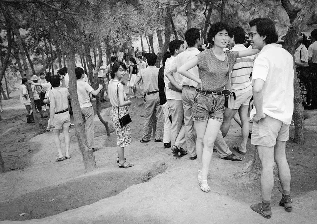1980年代,一对年轻夫妇在西安的公园里跳迪斯科