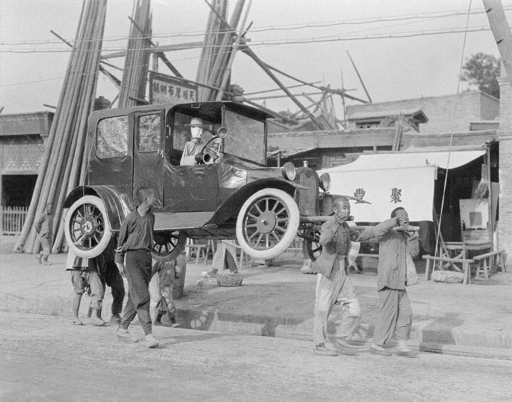 用来准备烧掉的纸车,拍摄于1920年代北京的葬礼