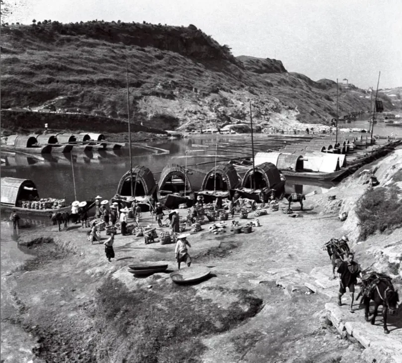1929年的自贡,正是这份繁华的缩影:釜溪河畔天车林立,盐井白雾与商号街巷相映,照片中王爷庙、大坟堡盐井等场景,诉说着盐都的荣光。
