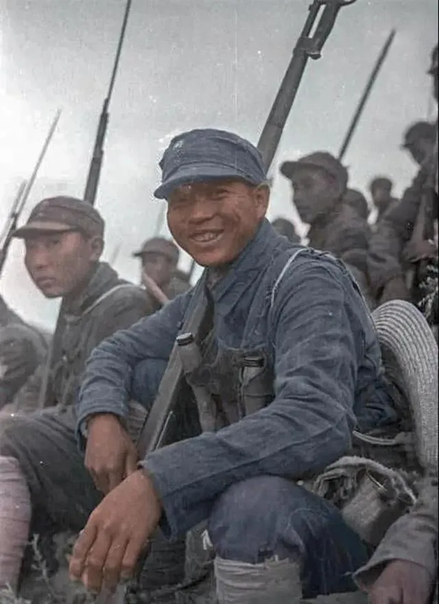 画面上的人笑得露出牙来,身上那件斜襟旧军衣,扣子歪着扣上,18GA的布臂章,爷爷看见这张照片总说:那是能打仗的人,笑容后头全是胆子和硬气,军服不讲究板直,草鞋、布带随便系,部队里没见过那种电视里一溜新衣裳的光景,拍拍身上的灰,比啥都实在。