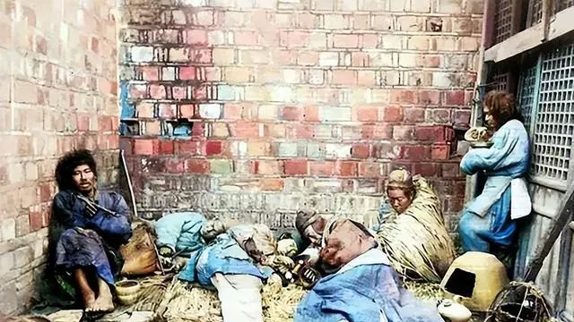 这一巷子的穷人,衣摆扫着砖缝,脸像灰里抹出来的,夹缝里冒口气就算过了一天,旁观的人站在阴影里不说话,照片静,可心里总响着一串脚步声,碎碎的,像要把地面磨出一层粉。