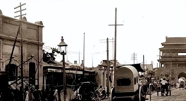 这两张是城里的街口,木电杆子立起来,铁网线在空中拉一弯,路边马车和轿子还没退场,坊门下人来人往,铺子口挂着幌子,老与新在同一条路上拧着走,以前点油灯靠风势,现在一按开关屋里就亮,变得快不快另说,好用是好用。