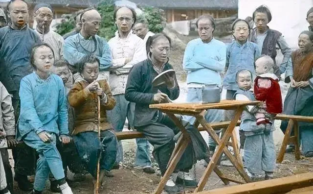 这一群围着木桌的是私塾,先生拿书念,孩子仰着脸跟着拖腔,旁边抽旱烟的打个盹又醒,字写在竹片上油亮亮的,我小时候抄唐诗抄得困,母亲在旁边说再背一首就去玩,这句许诺很灵,现在孩子用平板学,点一下就跳页,省事也容易心散。