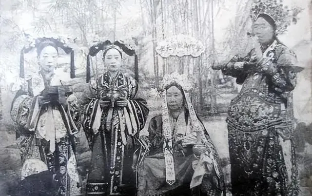这几位叫做盛装妇人,头顶花翎,衣裳重甸甸金线银线铺满,一站半天也得喘,衣角拖地,里面大概还套着几件夹层,坐着那位眉头带横,谁说宫里都是诗情画意,更多都是苦熬和规矩,亲戚一到逢年过节,奶奶喜欢拿旧照片翻着看,说“以前穿得复杂,生活也麻烦”,光鲜外表下头,谁又知道那份心事。