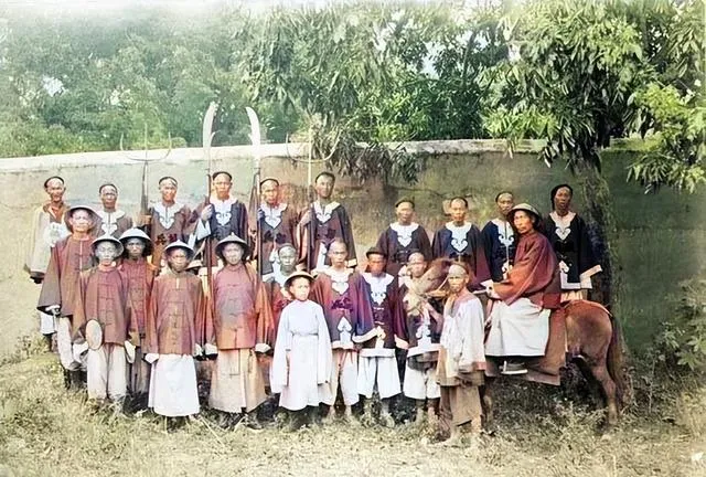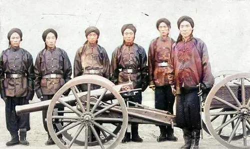 真实清末军队彩色老照片:裹脚千金赤脚丫鬟,尽显生活百态