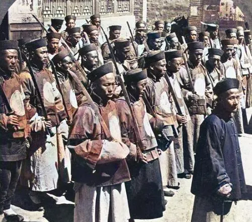 甚至到了后期,已经有新军编制,有了西式步枪、洋枪队,可整个队伍的精气神还是软,还是慢,一点不是“保家卫国”的样子。最扎心的是真实照片里,清军居然还有打赤脚的,随军传令兵拎个小旗子,军官骑马老气横秋,单看装备、衣着、精气神,差距太大。就像那个年代的人被时代拖着往前走,怎么跑都追不上。